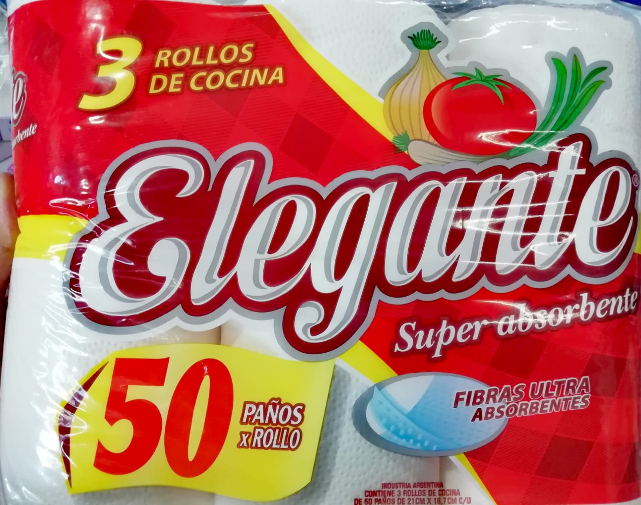 Rollo cocina pack 3 rollos x120 paÃos x4 paq elegante cod923