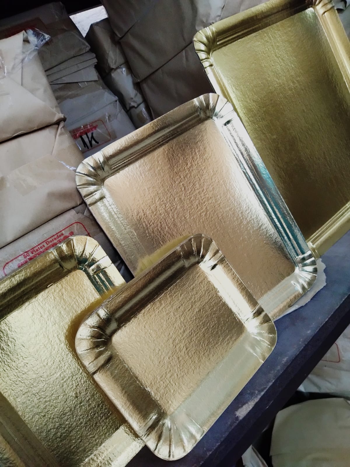 Plato dorado rectangular carton 1 kg 22x28cm xunidad